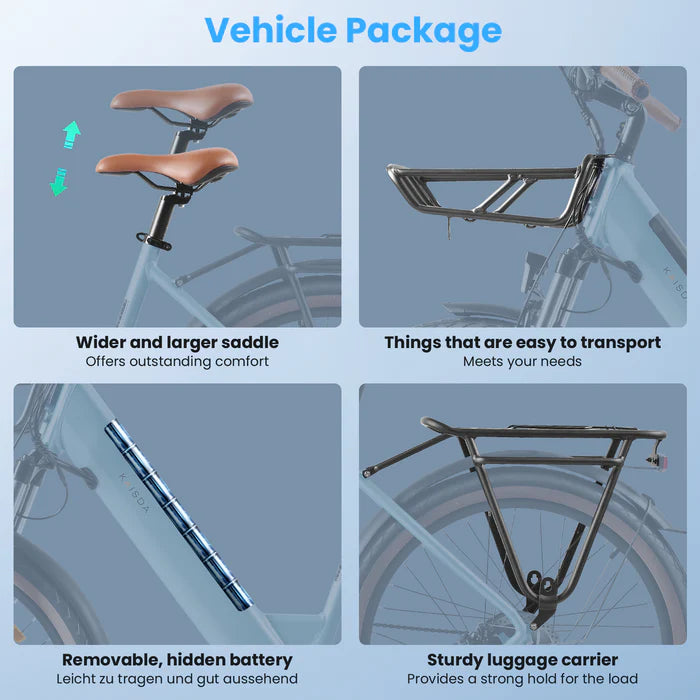 Why limit yourself to bland, ordinary bike rides? The Kestar K601 is available in two color options. Designed for urban commuting riding. The classic low-span frame and removable battery make the K601 look simple and practical. The body weight is only about 27.7KG, allowing you to better control and enjoy the fun of riding. The lightweight, smooth and aerodynamic K601 E-bike will help you cover the longest distances.